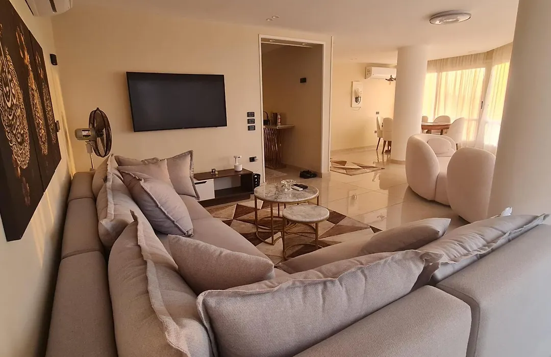 Situated nearly 25 minutes' walk from the Child Center of Civilization and Creativity, the spacious 200 m² Heliopolis Ultra Luxury Panoramic Apt Near Cairo Airport also boasts easy access to El Giza train station which is 22 km away. The apartment features a terrace that overlooks the garden.